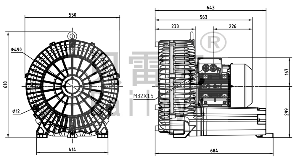 最大風(fēng)量:1370m3/h 最大正壓:110mbar 最大負(fù)壓:120mbar 防護(hù)等級(jí):IP55 噪音:75db 重量:98Kg |