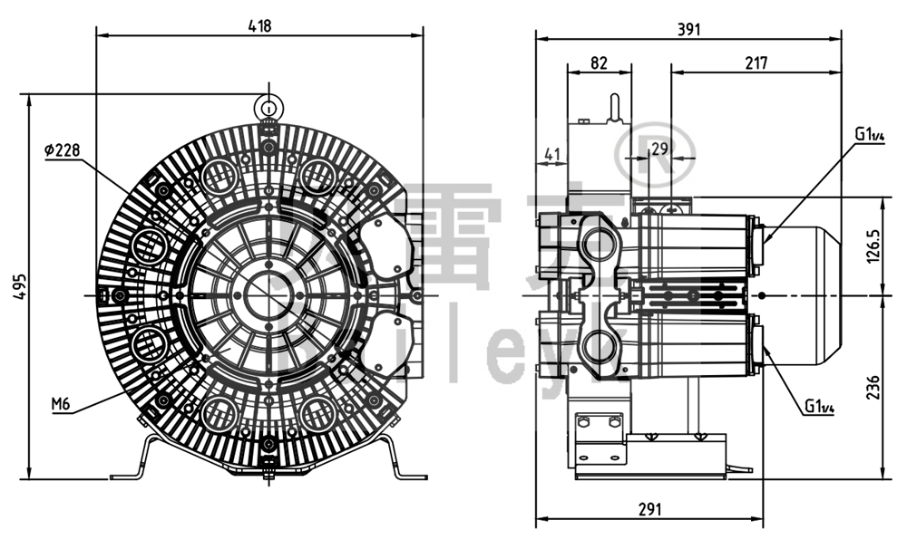 最大風(fēng)量:165m3/h 最大正壓:480mbar 最大負(fù)壓:340mbar 防護(hù)等級(jí):IP55 噪音:65db 重量:35Kg |
